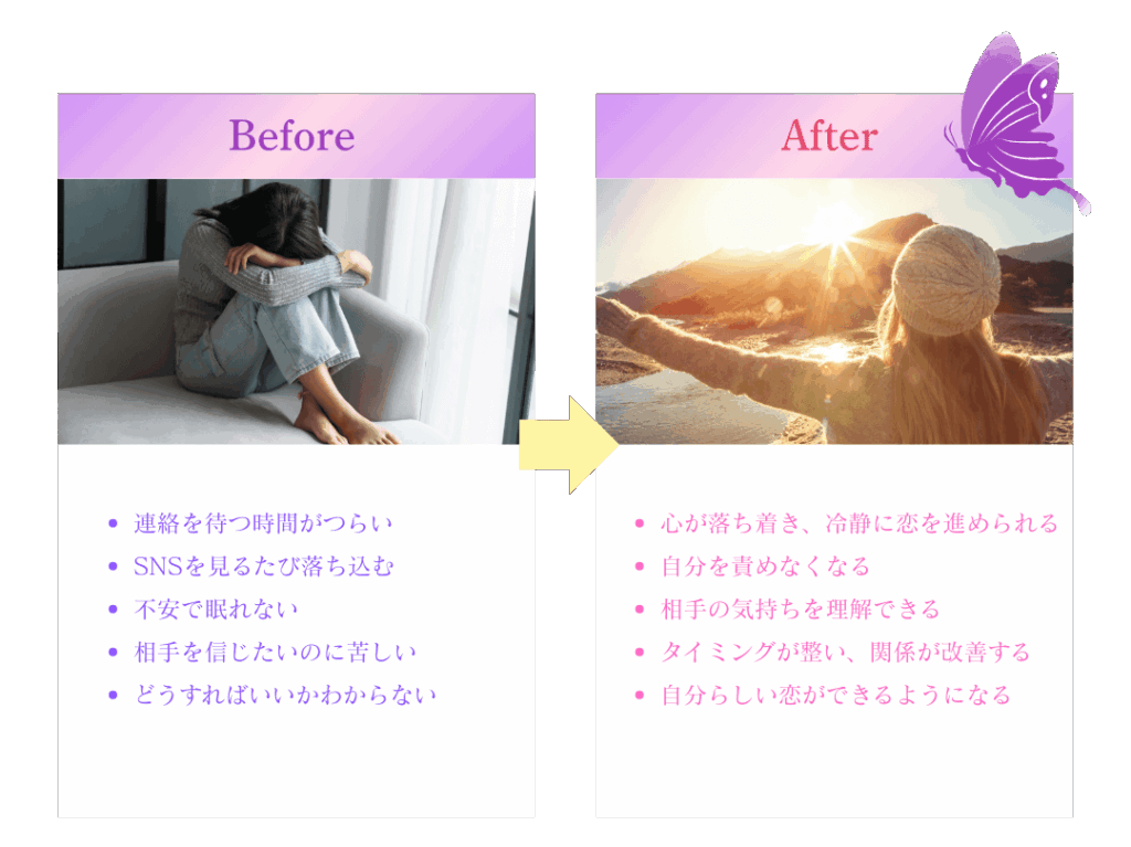 あなたの恋が前へ進む道を、一緒に見つけていきます。